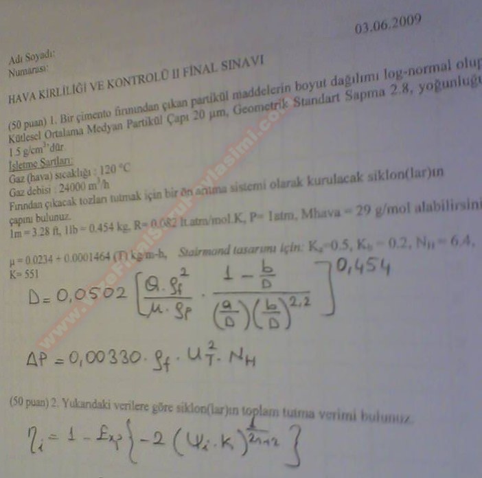 Hava Kirliliği ve Kontrolü -2 Vize Soruları 13-04-2015, 22:53