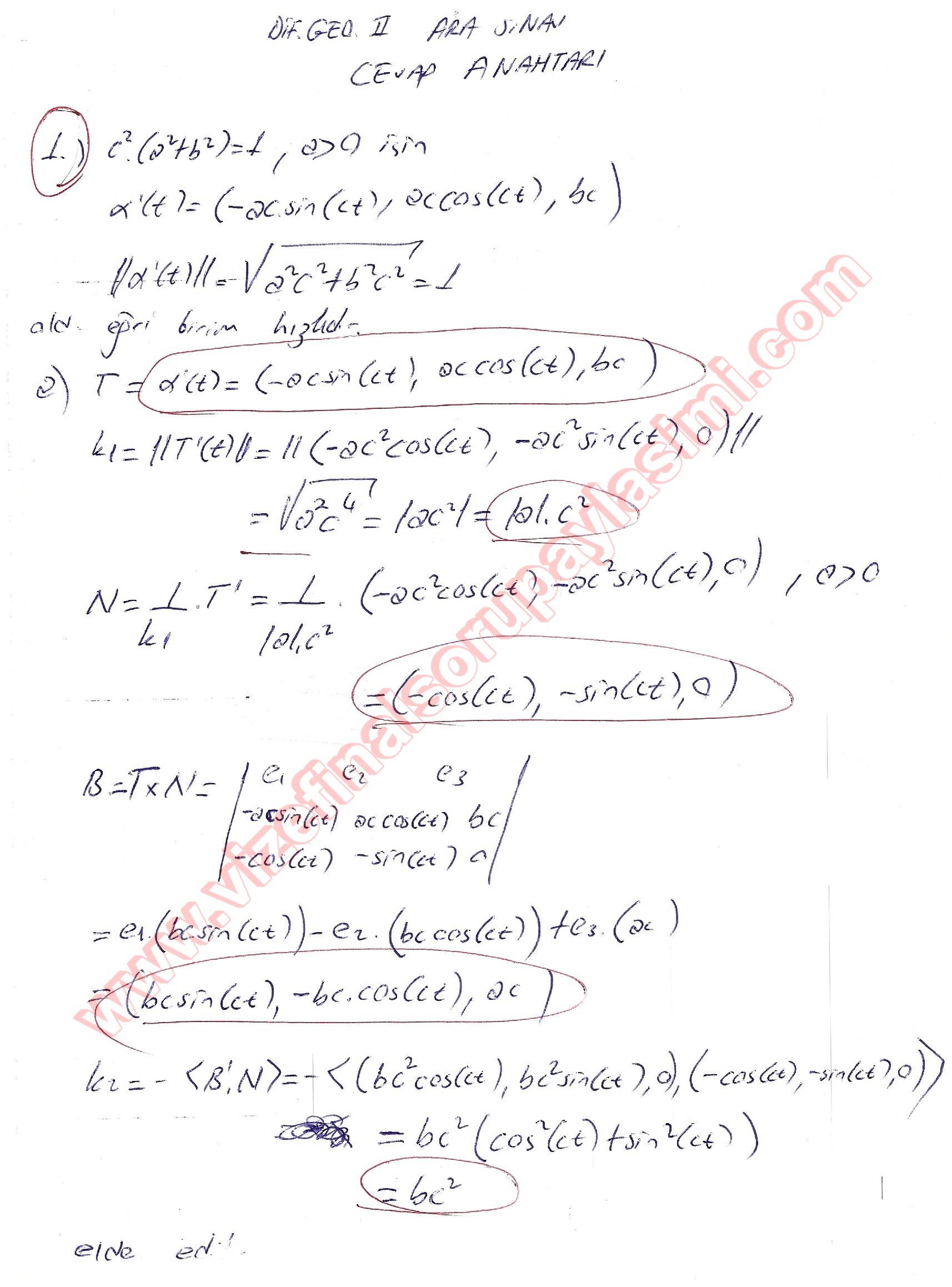 Diferansiyel Geometri-2 Vize Soruları Ve Cevapları