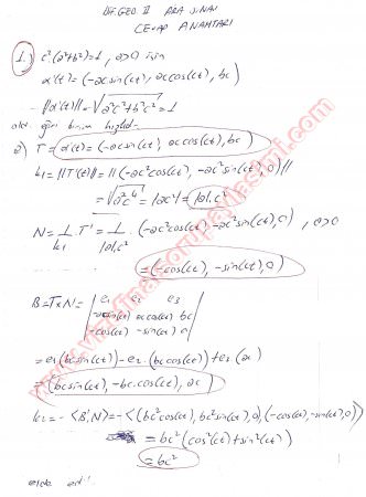 Vize ve Final Soruları / Sakarya Üniversitesi / Diferansiyel Geometri-2