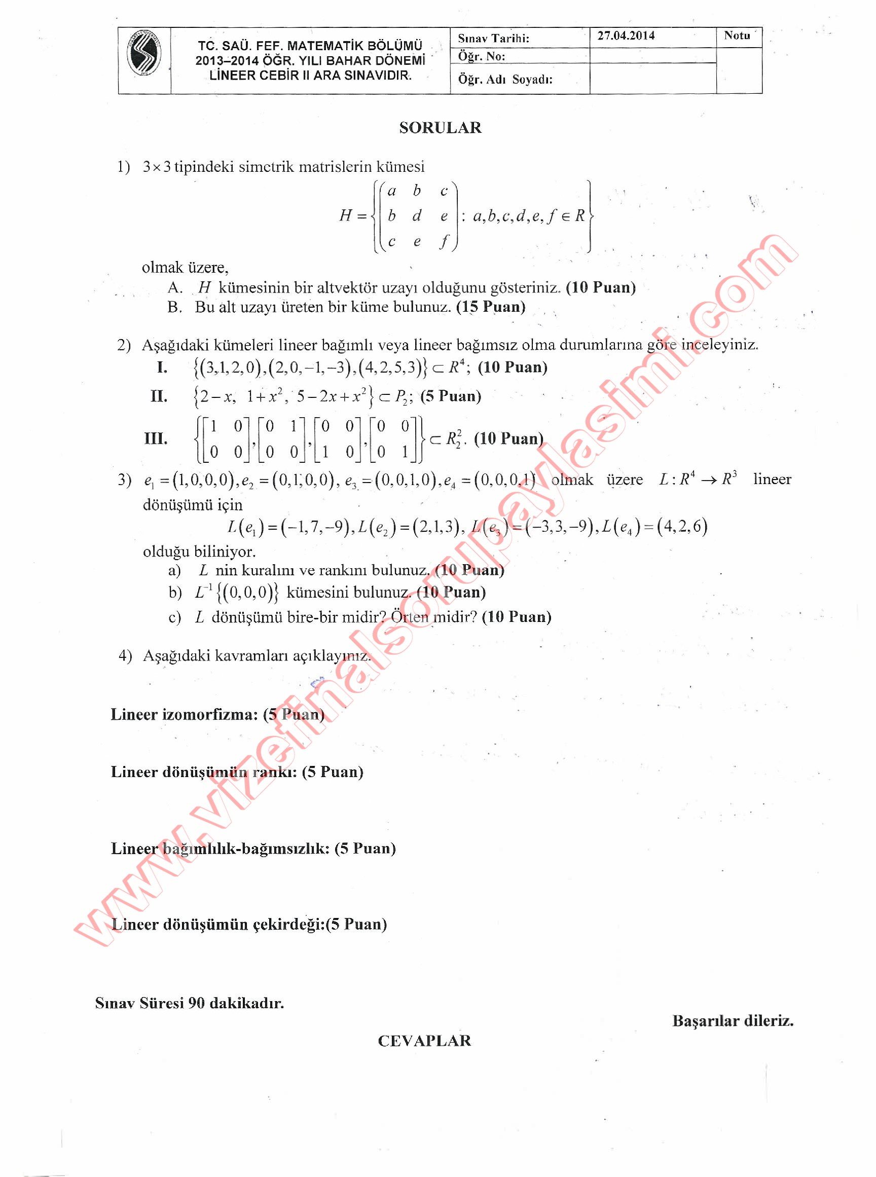 Lineer Cebir-2 Vize Soruları 14-07-2014, 18:59
