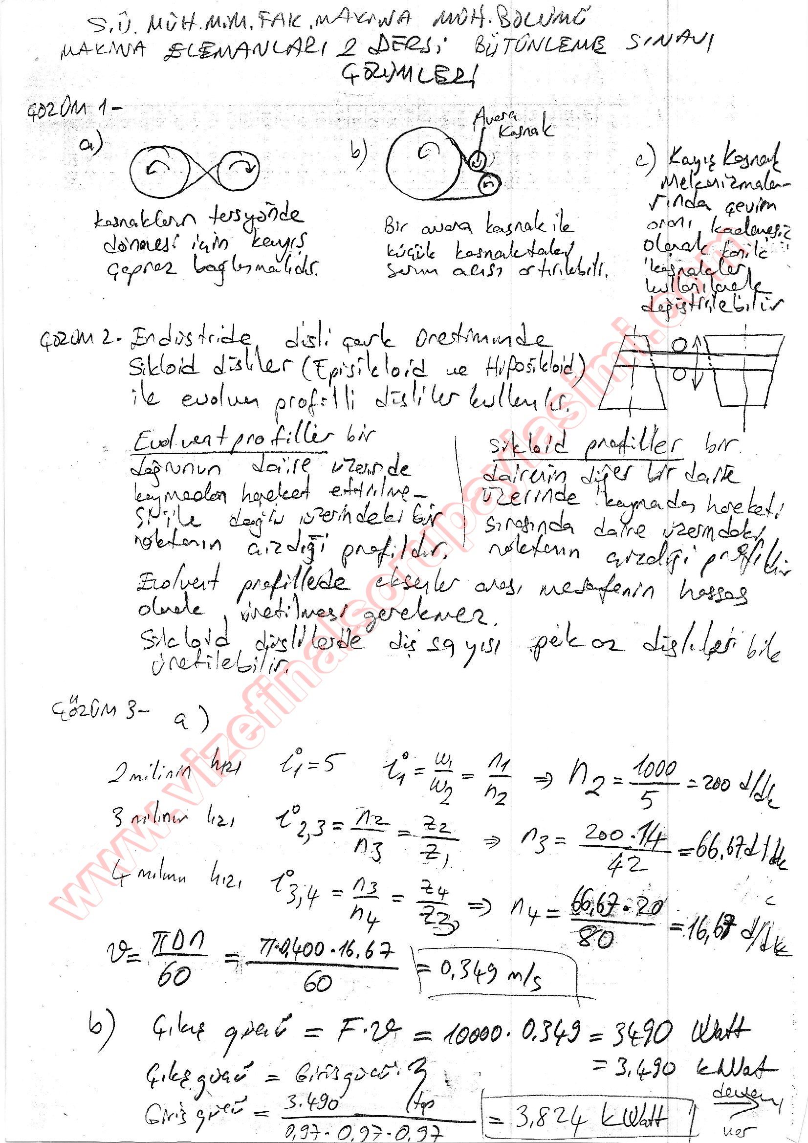 Makina Elemanları-2 Bütünleme Soruları Ve Cevapları