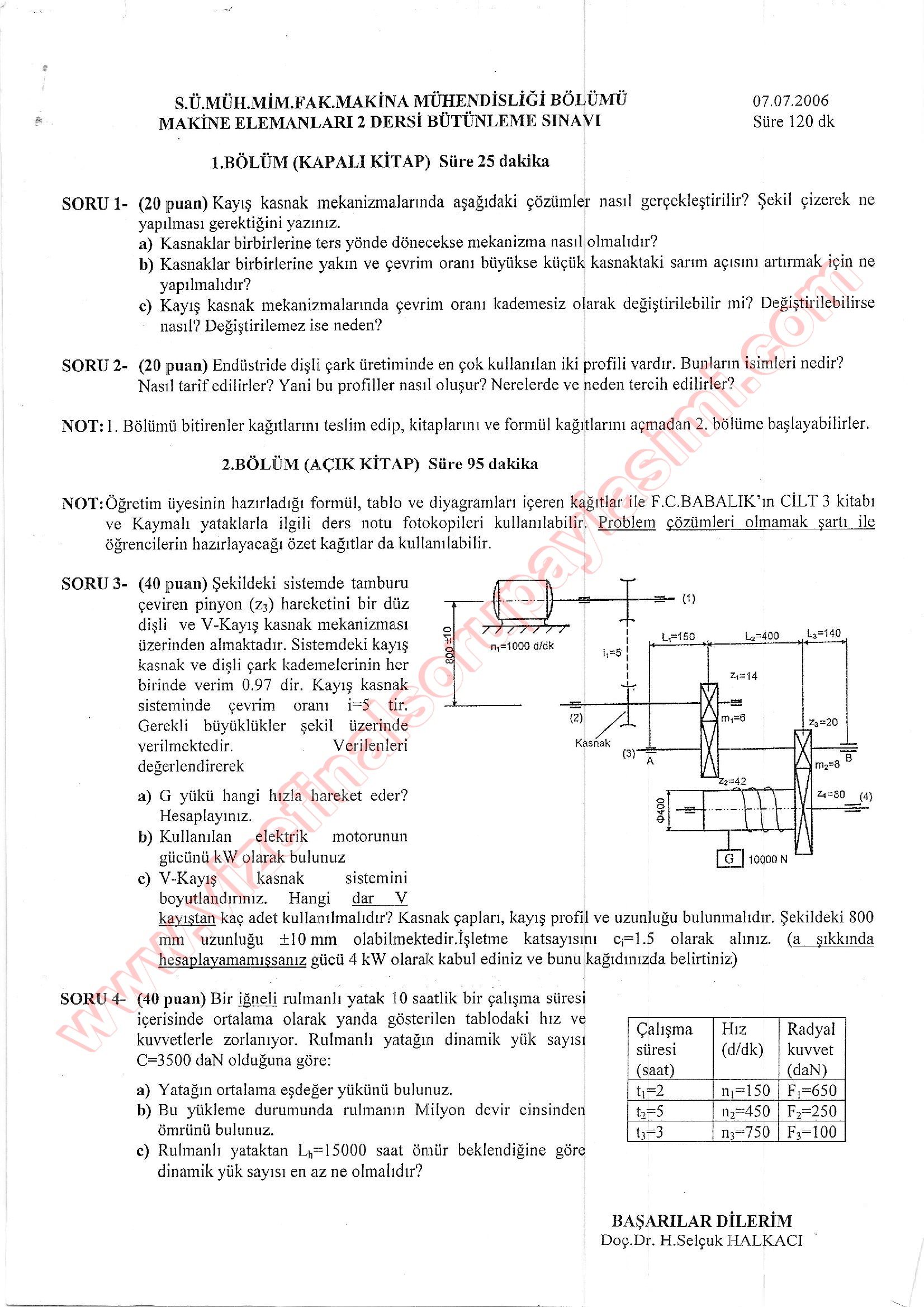 Vize ve Final Soruları / Selçuk Üniversitesi / Makina Elemanları-2
