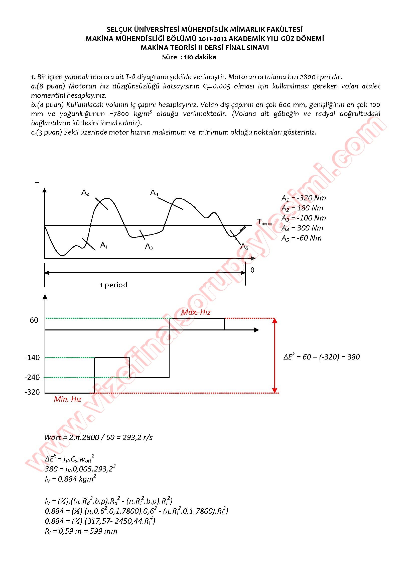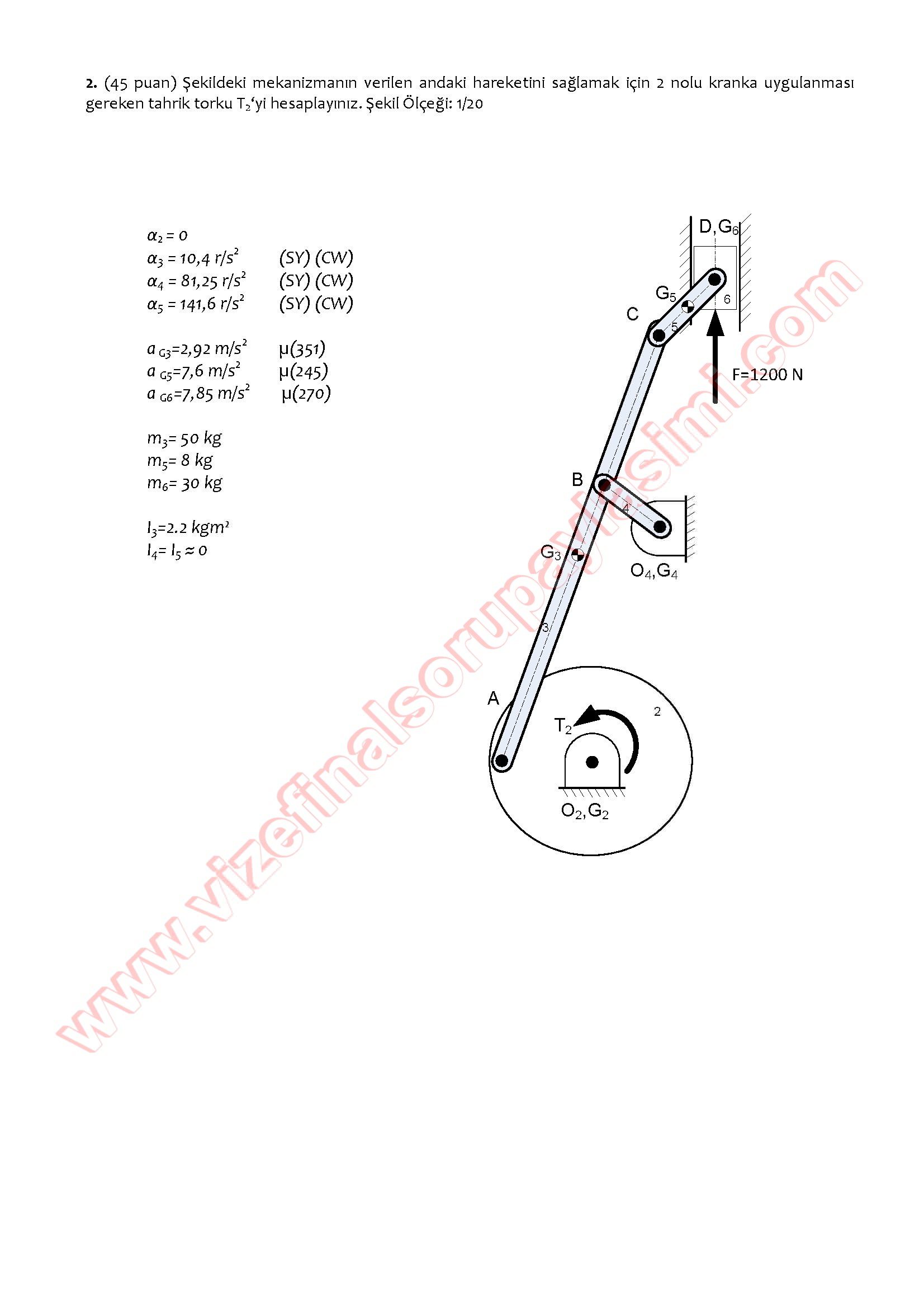 Vize ve Final Soruları / Selçuk Üniversitesi / Makina Teorisi-2