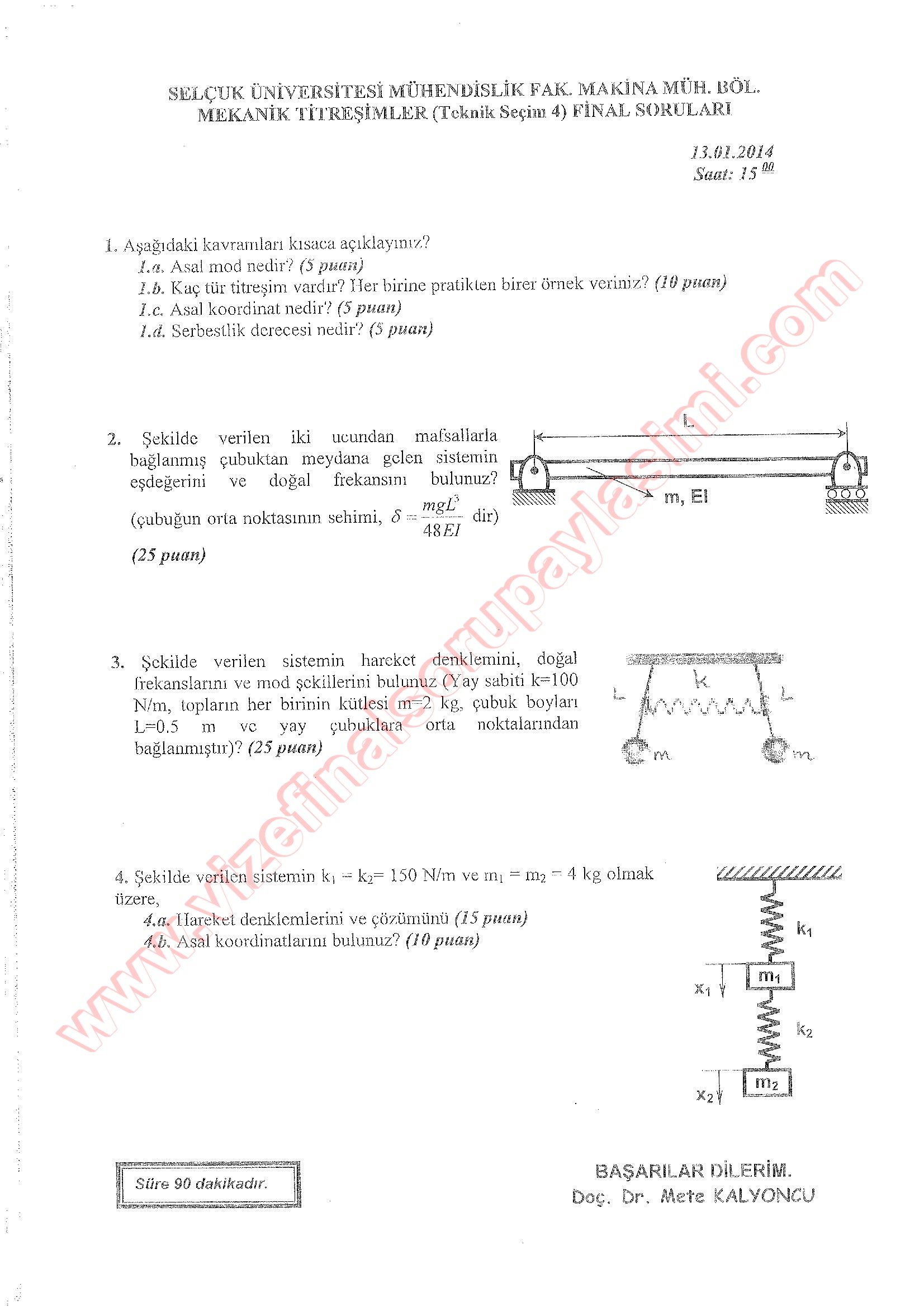 Vize ve Final Soruları / Selçuk Üniversitesi / Mekanik Titreşimler