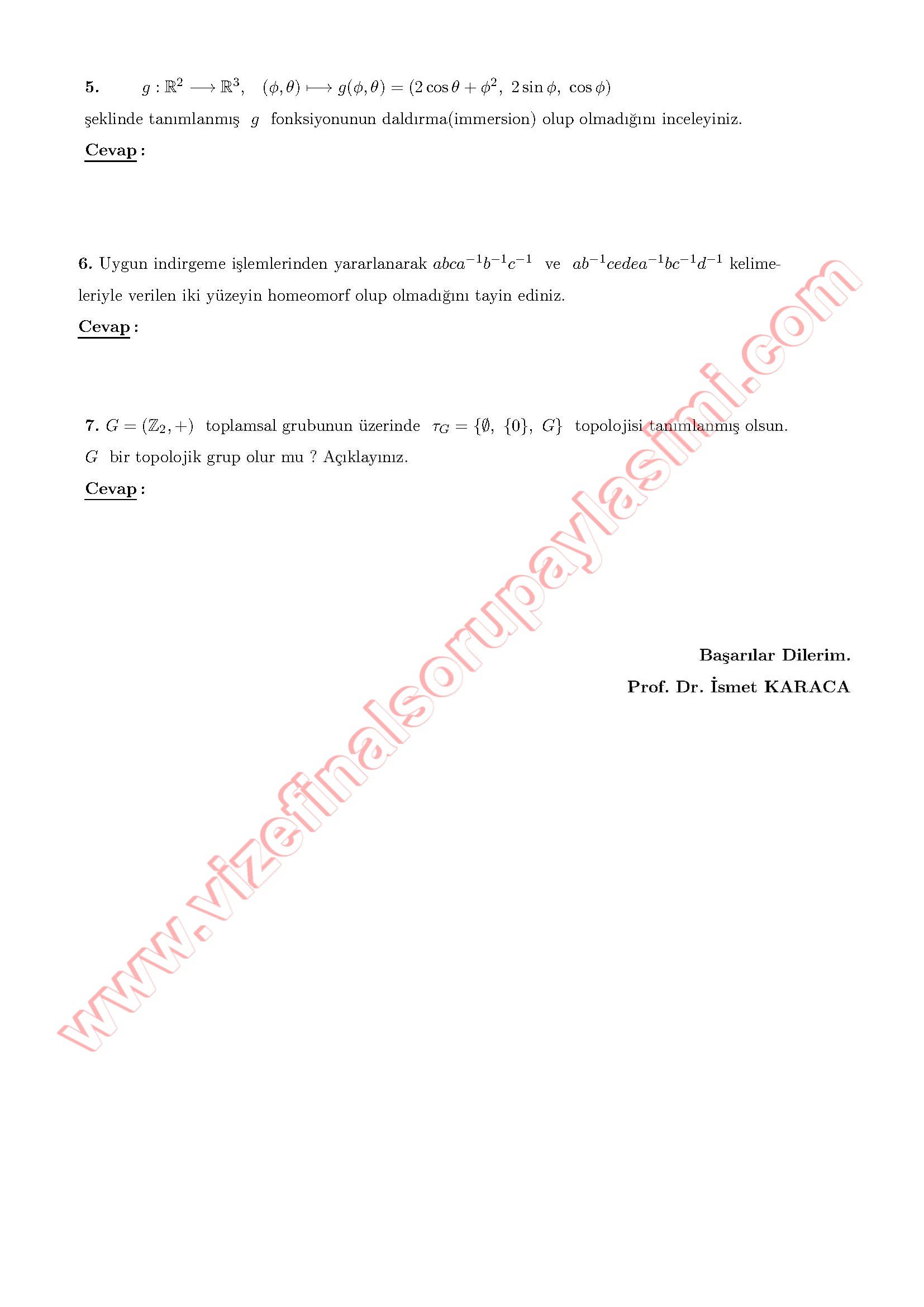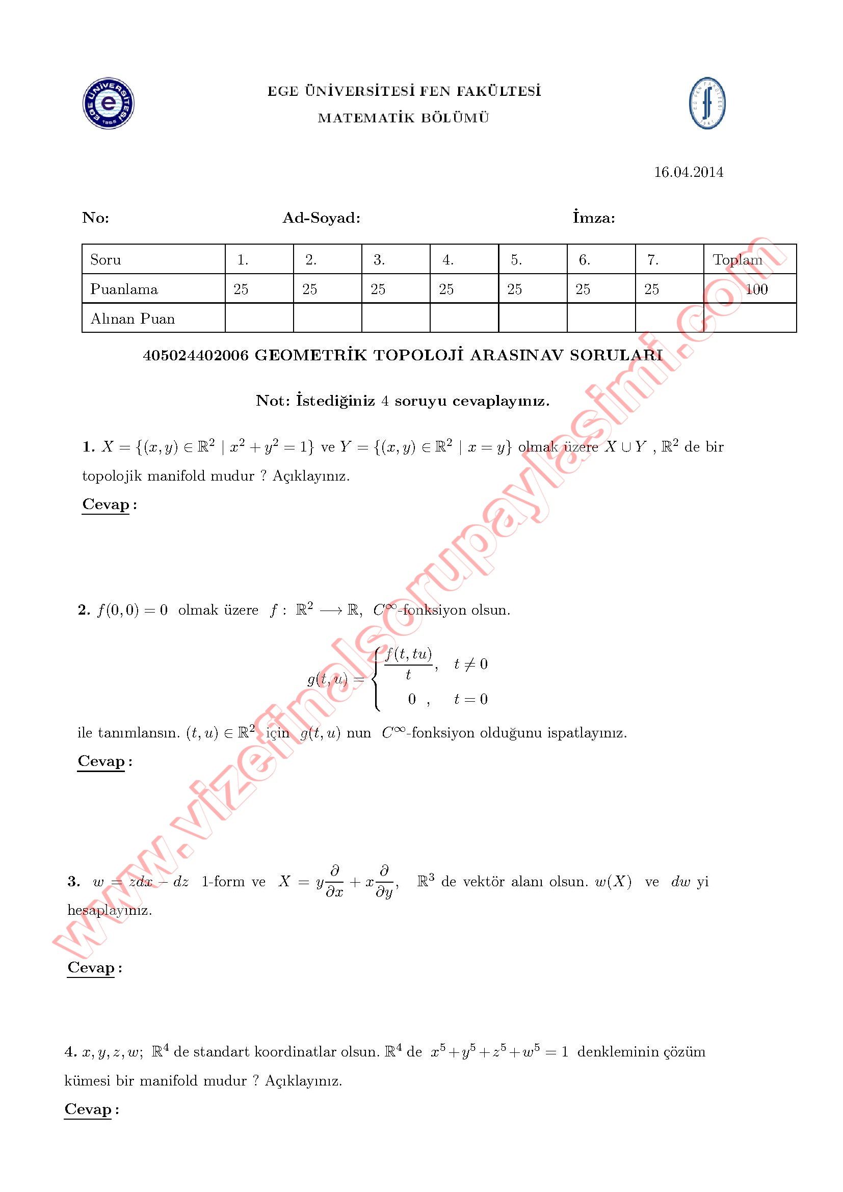 Vize ve Final Soruları / Ege Üniversitesi / Geometrik Topoloji