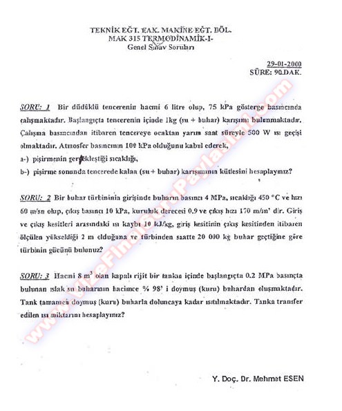 Termodinamik-1 Sınav Soruları - 05.01.2003 17-07-2014, 22:20