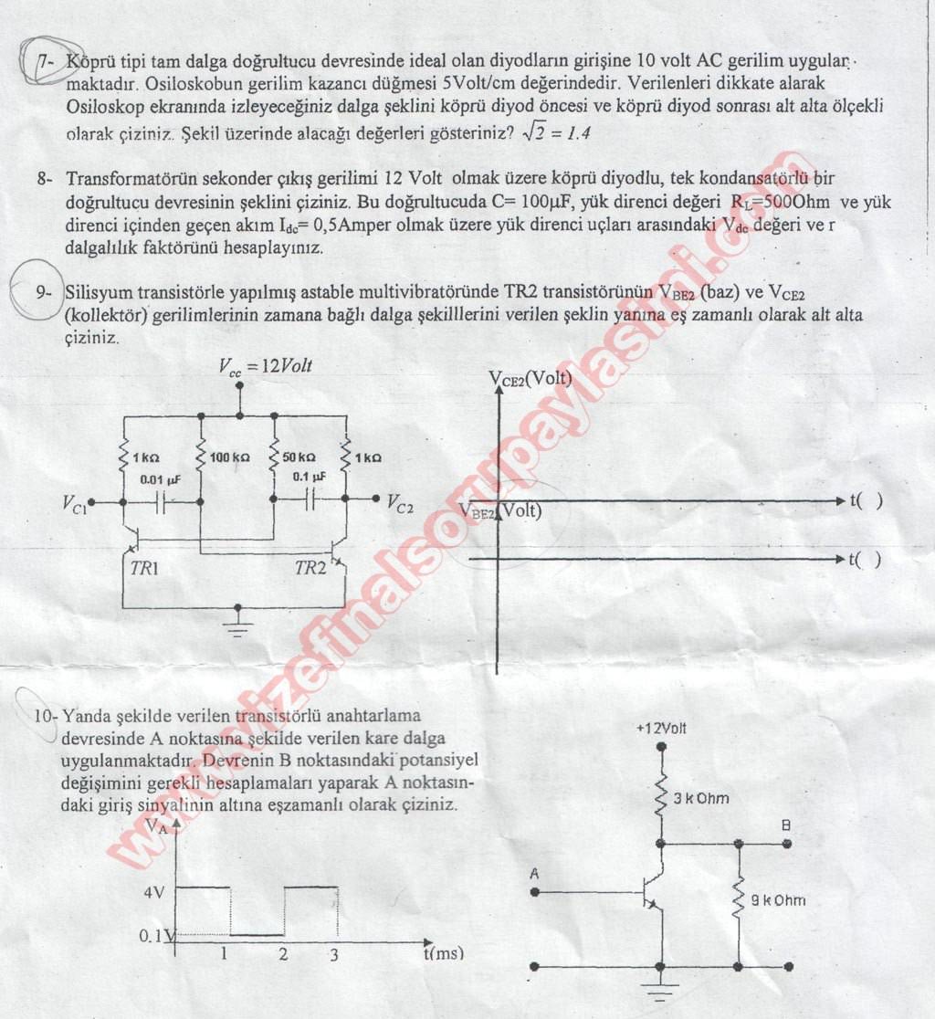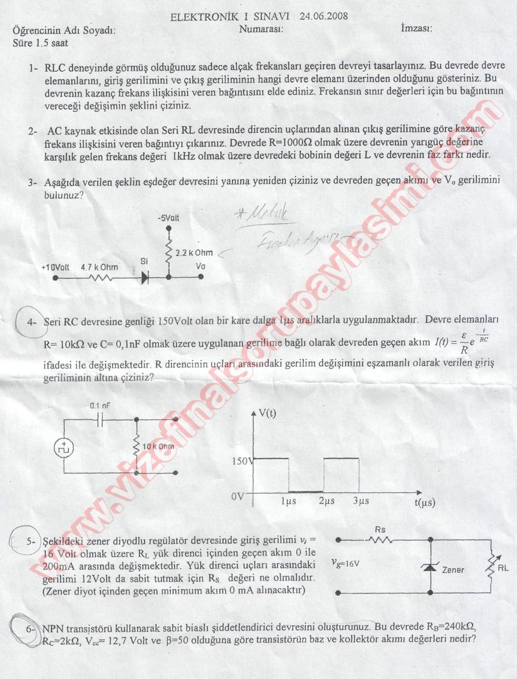 Vize ve Final Soruları / İstanbul Üniversitesi / Elektronik -1