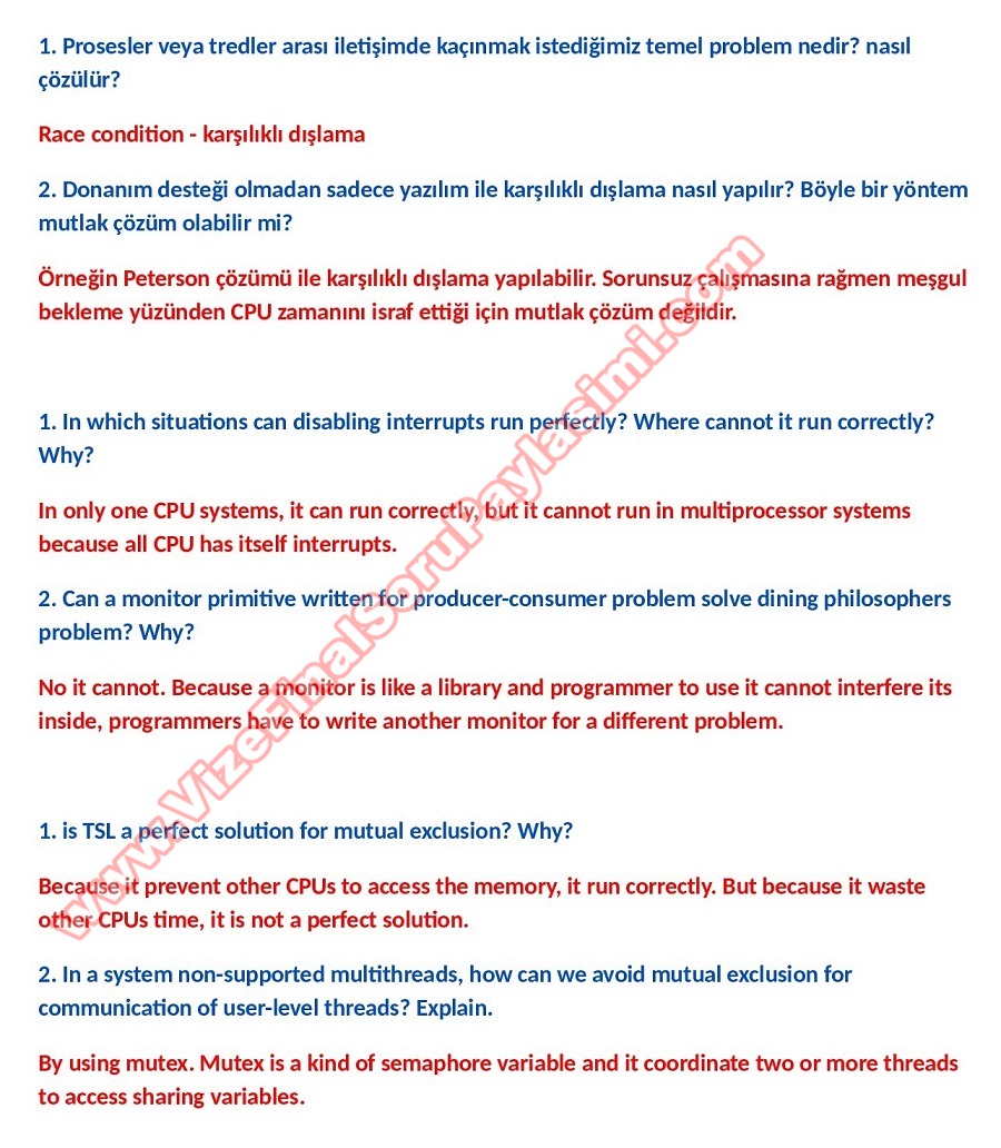 Vize ve Final Soruları / Çukurova Üniversitesi / İşletim Sistemleri Dersi (Operating Systems)