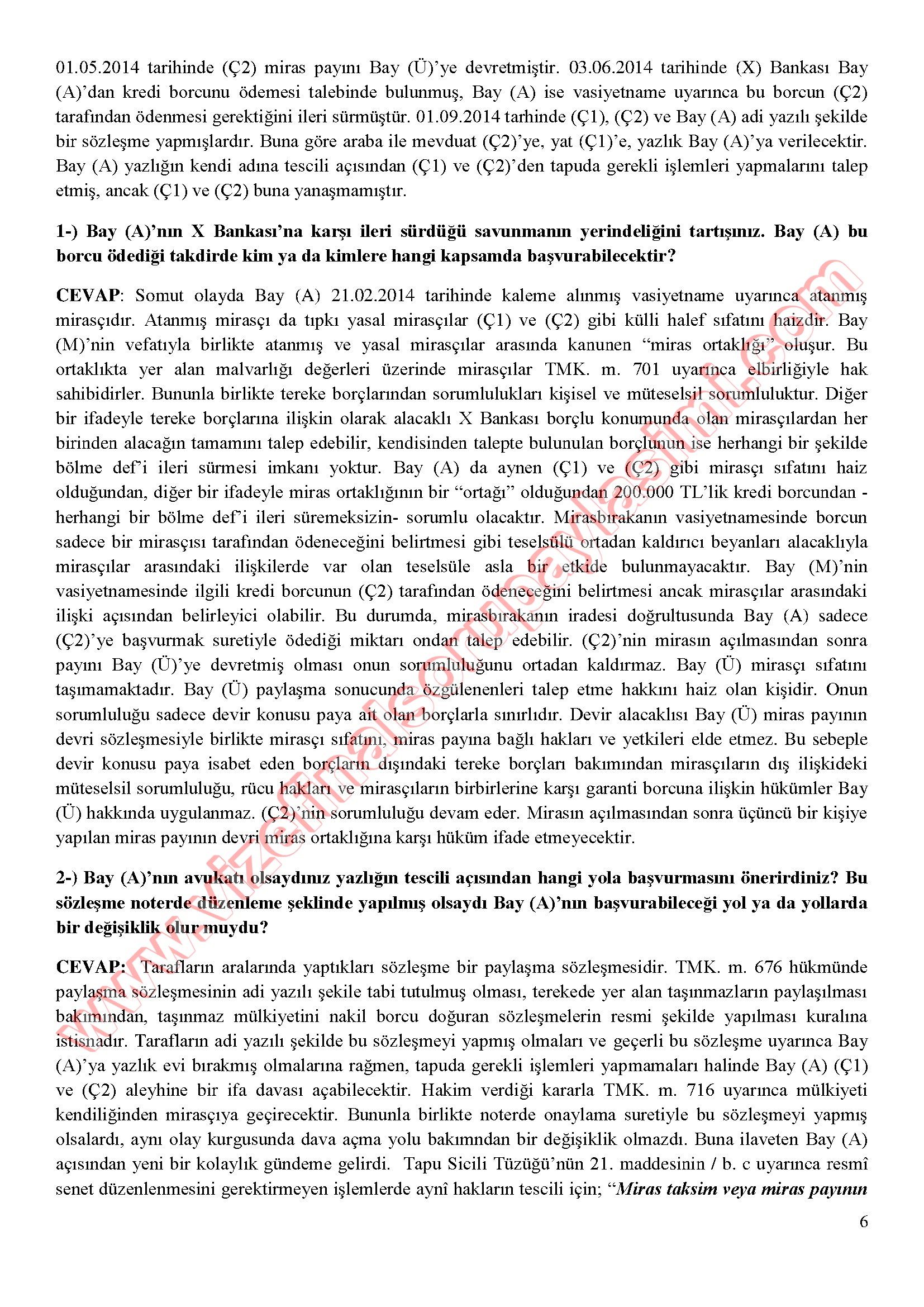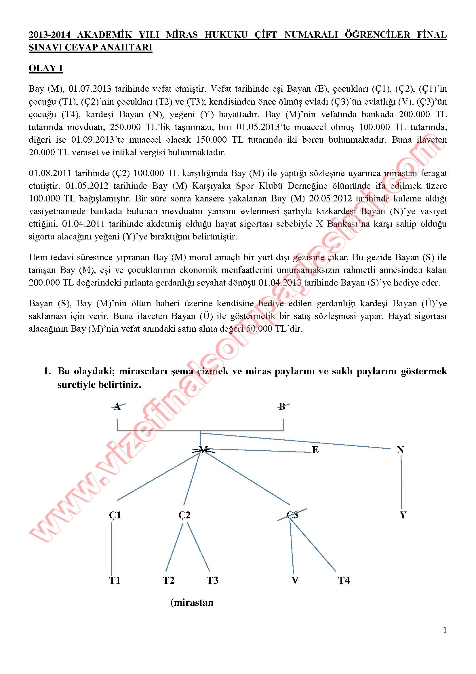 Vize ve Final Soruları / İstanbul Üniversitesi / Miras Hukuku