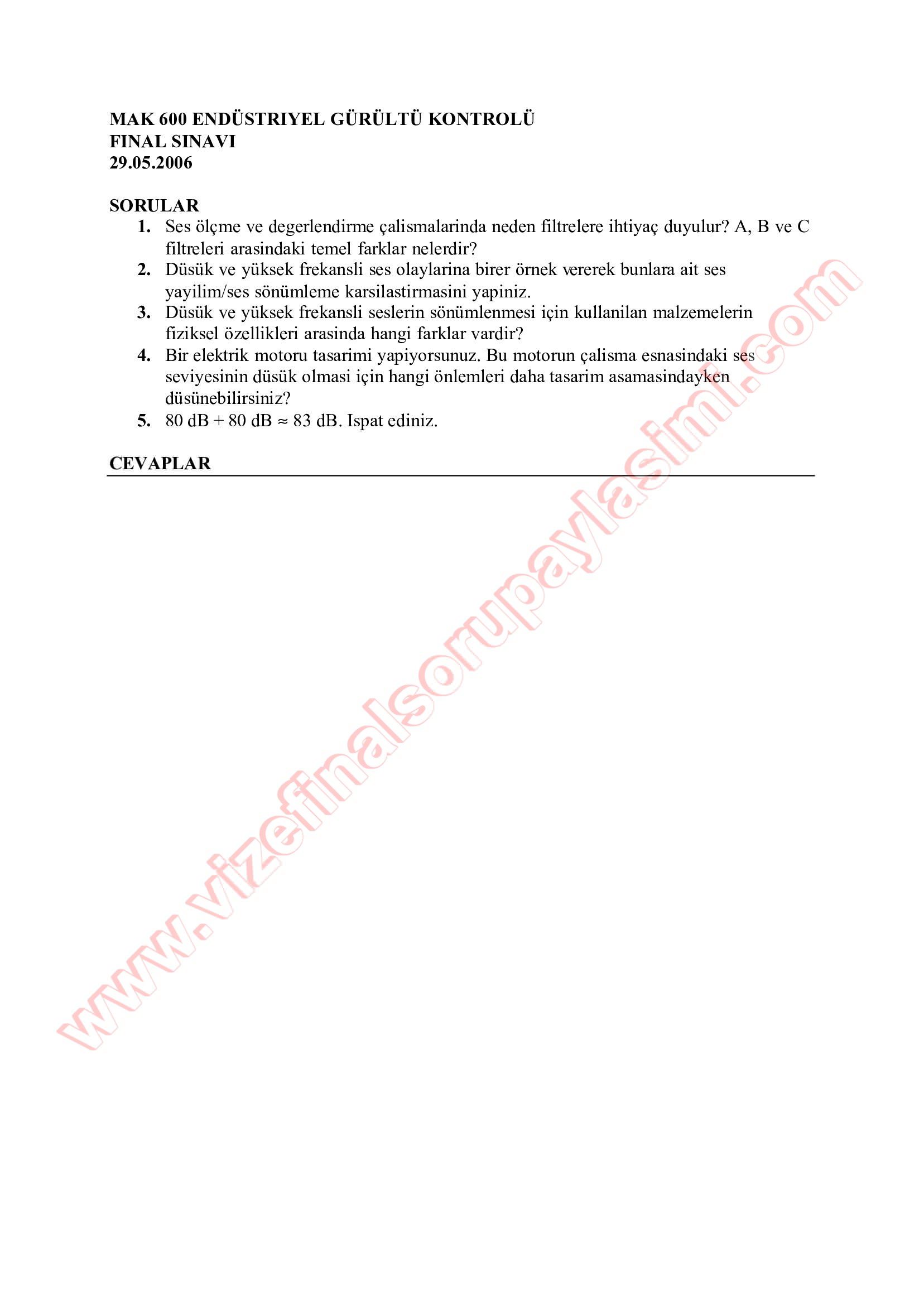 Gürültü Kirliliği Vize Soruları 2-03-2015, 13:57