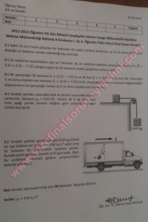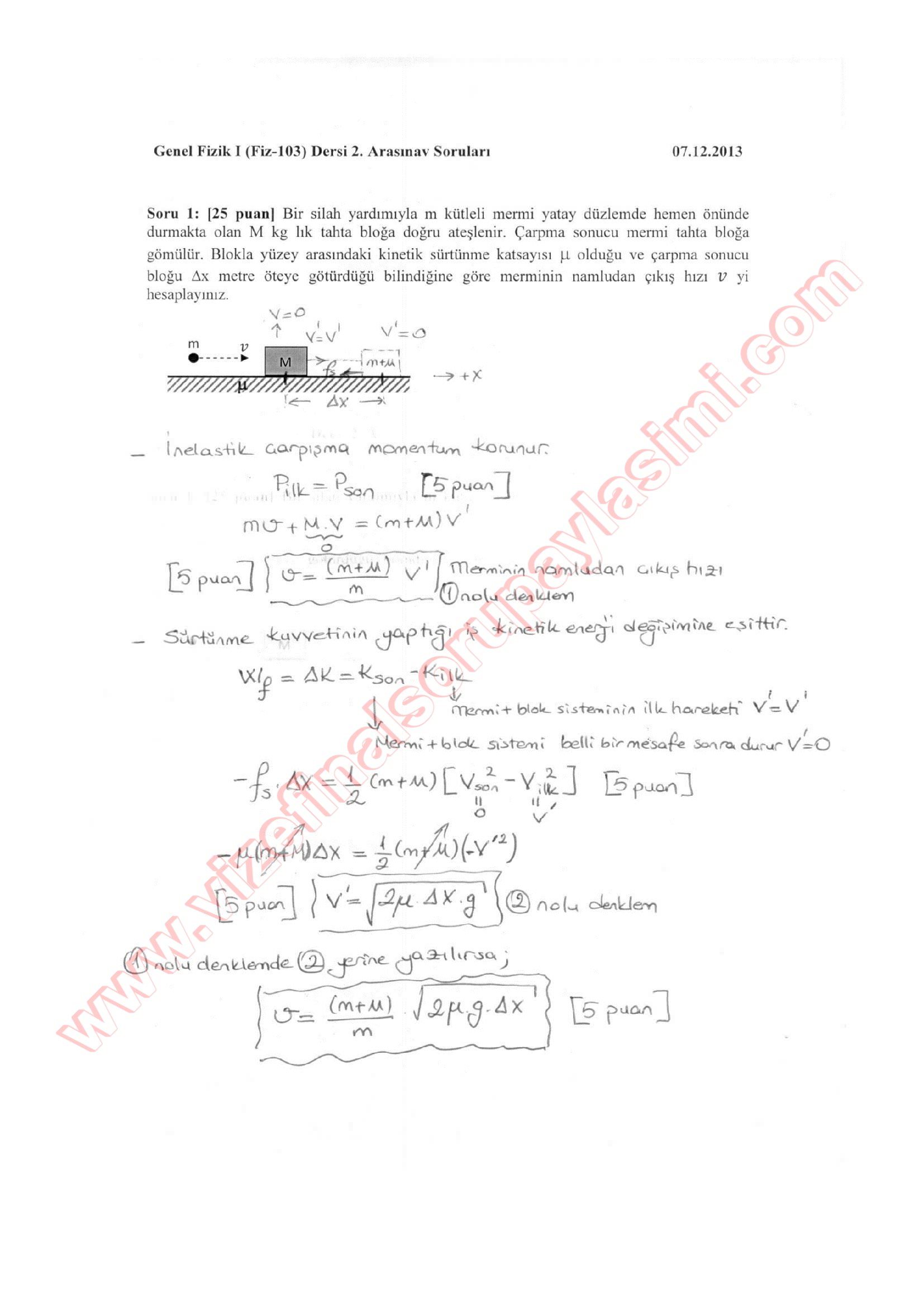 Fizik-1 Vize Soruları Ve Cevapları - 07.12.2013