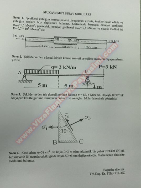 Vize ve Final Soruları / Fırat Üniversitesi / Mukavemet-1