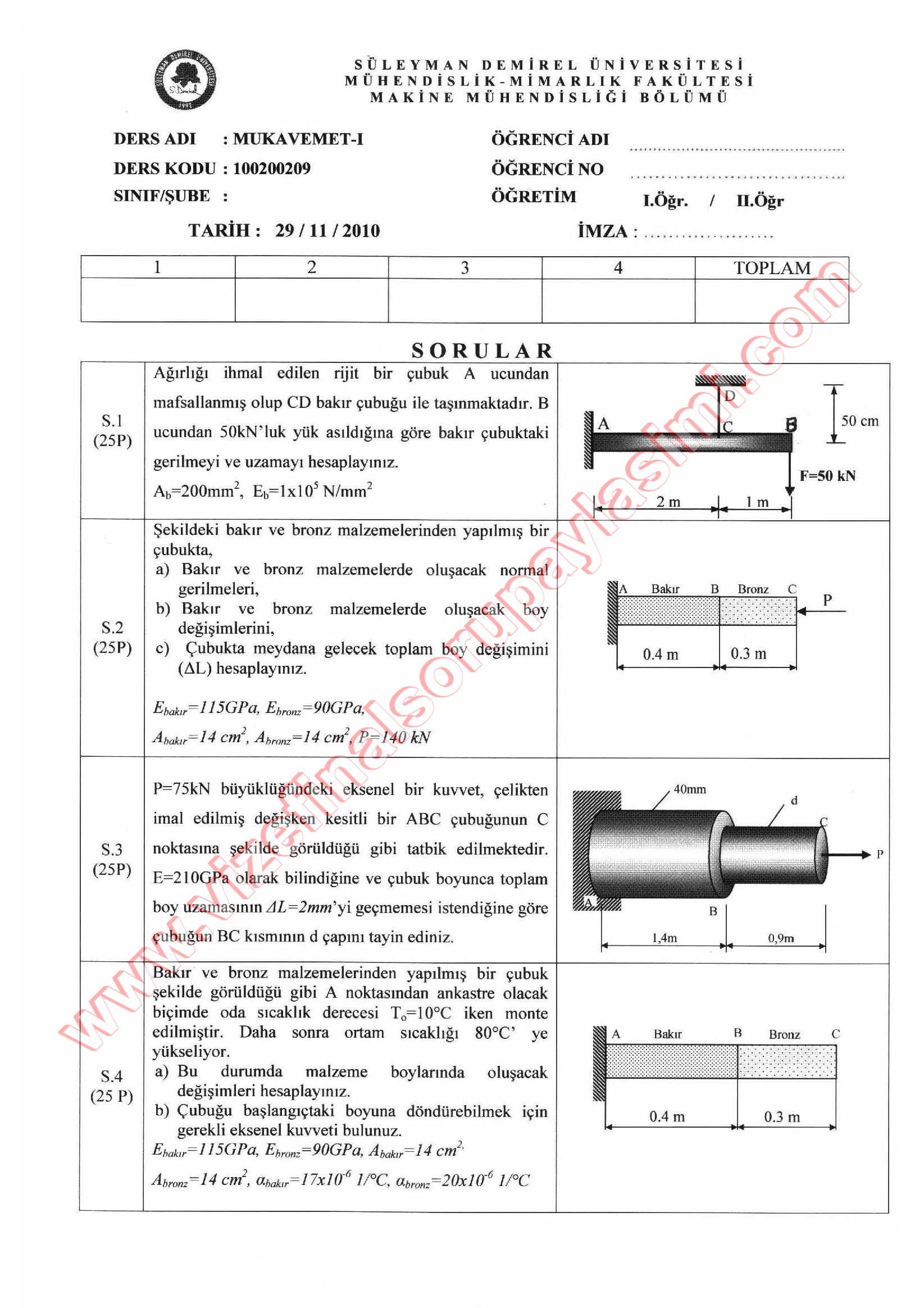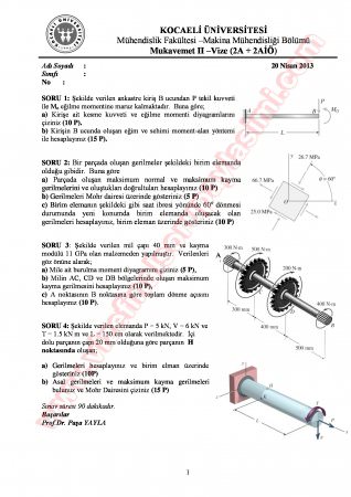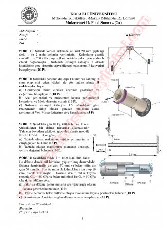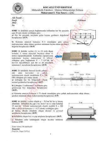 Vize ve Final Soruları / Süleyman Demirel Üniversitesi / Mukavemet -1