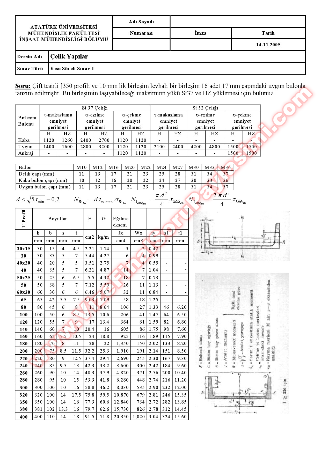 Vize ve Final Soruları / Erzurum Atatürk Üniversitesi / Çelik Yapılar Dersi