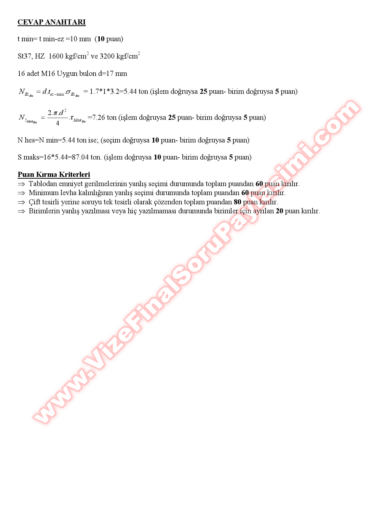 Çelik Yapılar Final Soruları - 2005 14-05-2015, 17:04