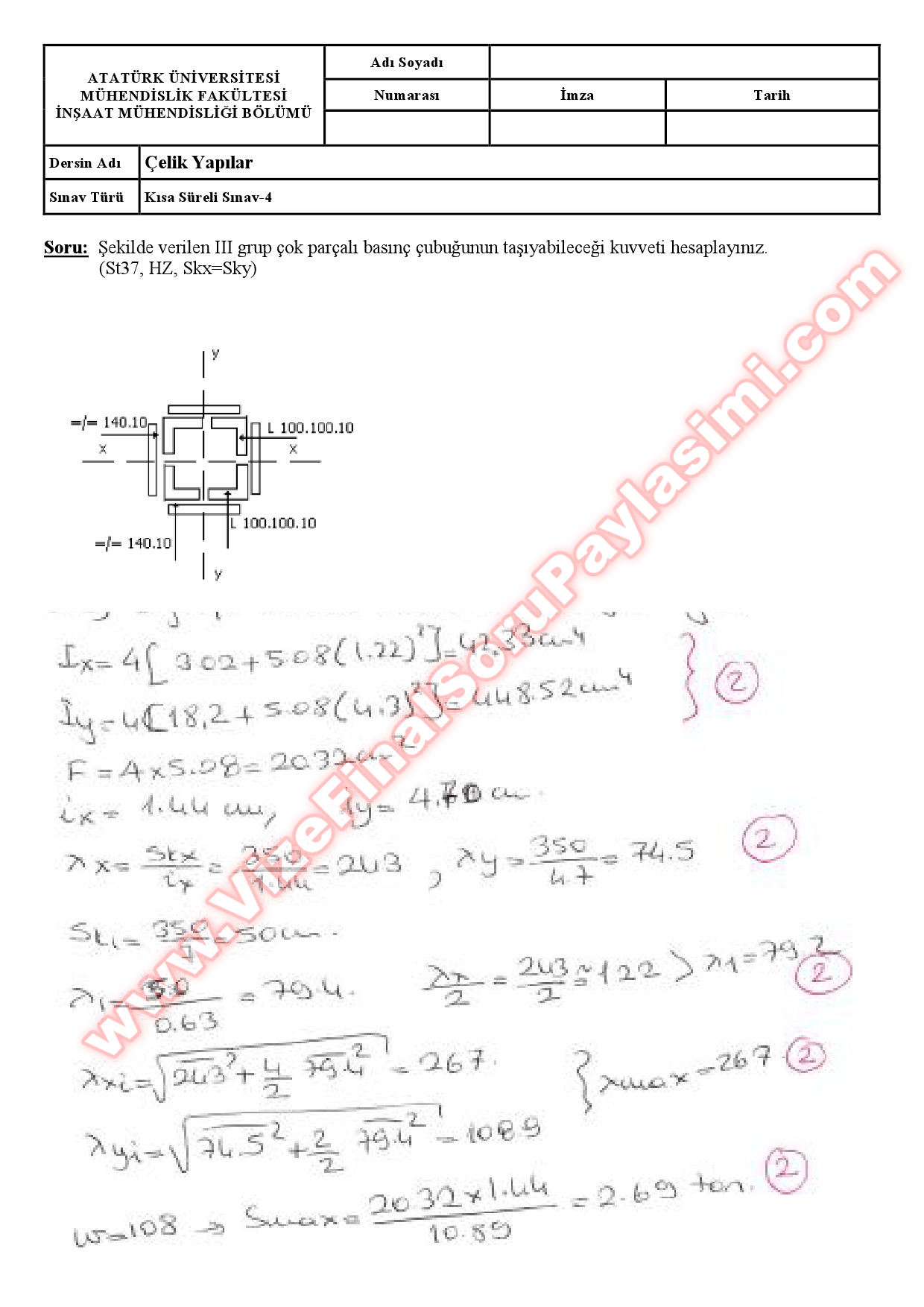 Vize ve Final Soruları / Erzurum Atatürk Üniversitesi / Çelik Yapılar Dersi