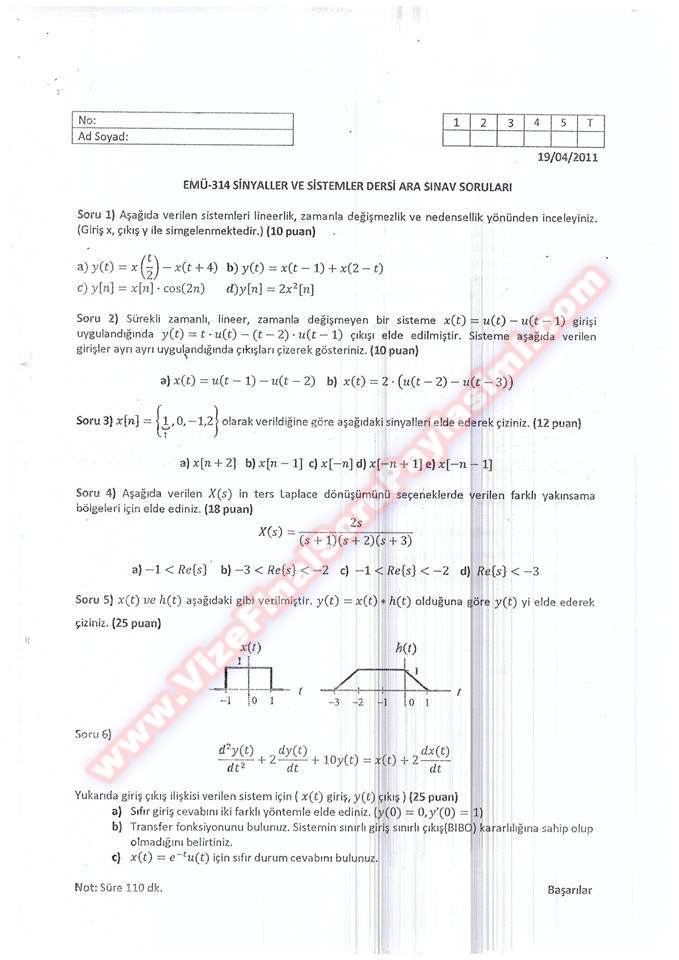 Fırat Üniversitesi Sinyaller ve Sistemler Dersi Vize-2 Soruları 18-07-2014, 19:43