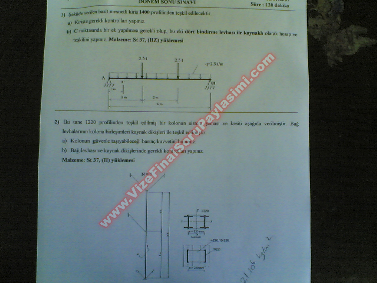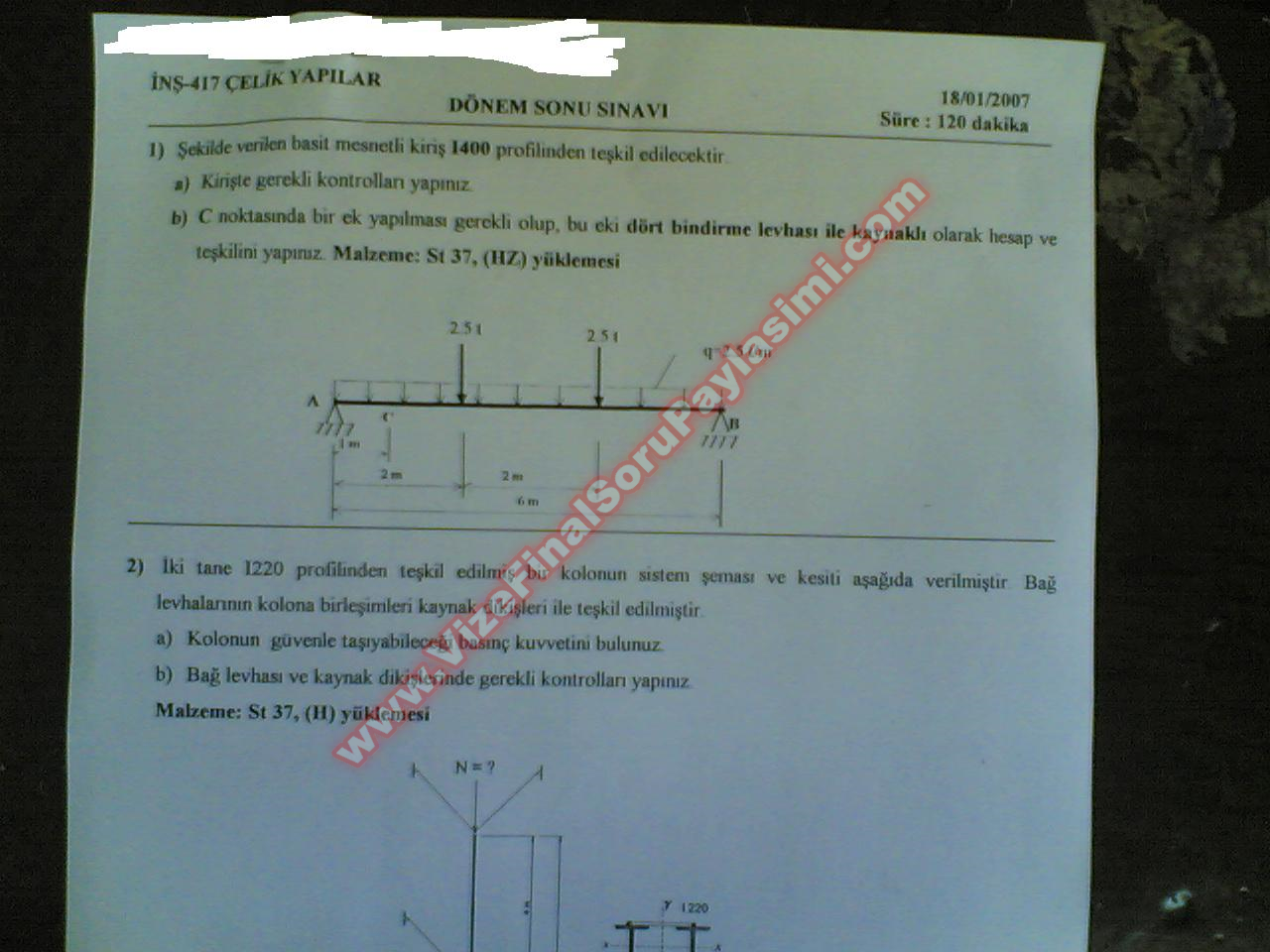 Çelik Yapılar Quiz3 Soruları - 2005 14-05-2015, 16:48
