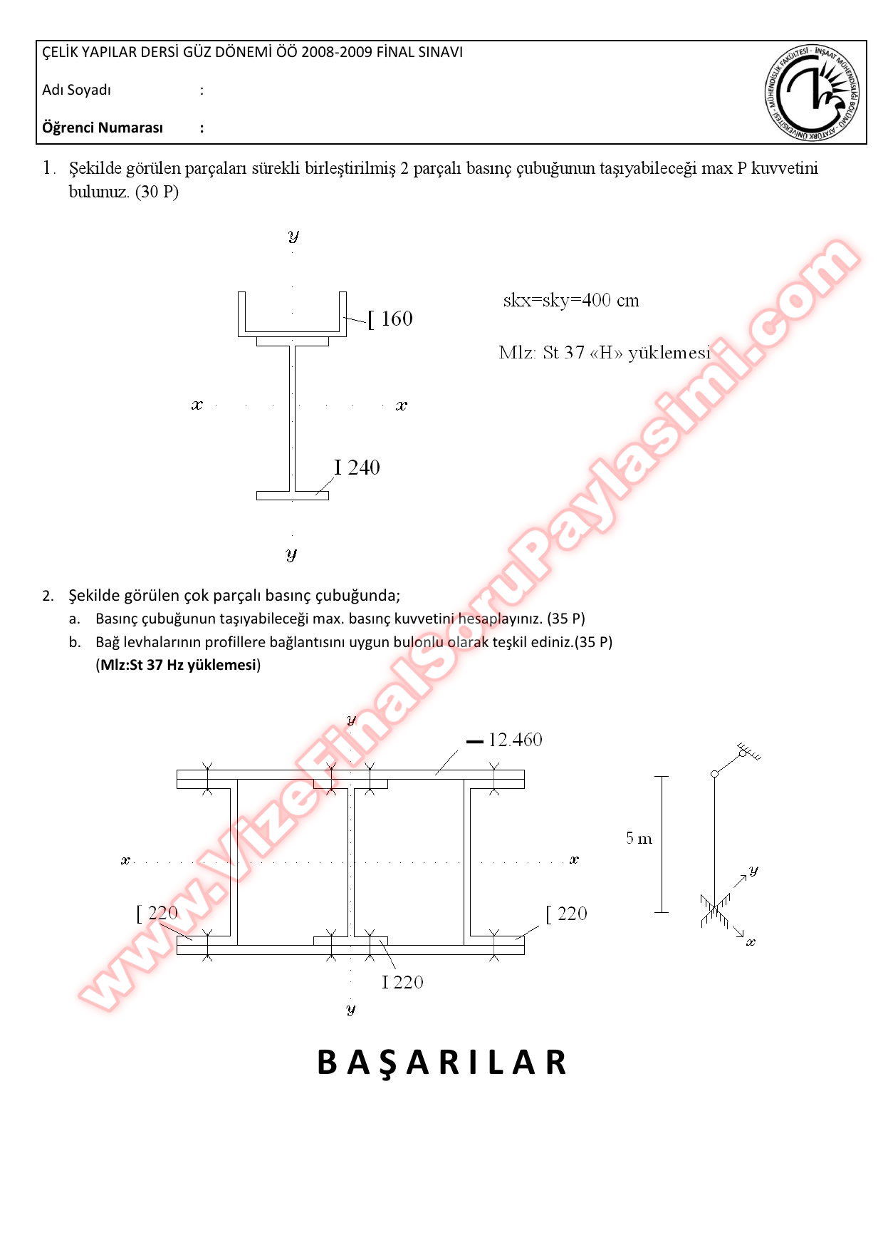 Çelik Yapılar Vize Soruları - 2008 14-05-2015, 17:20