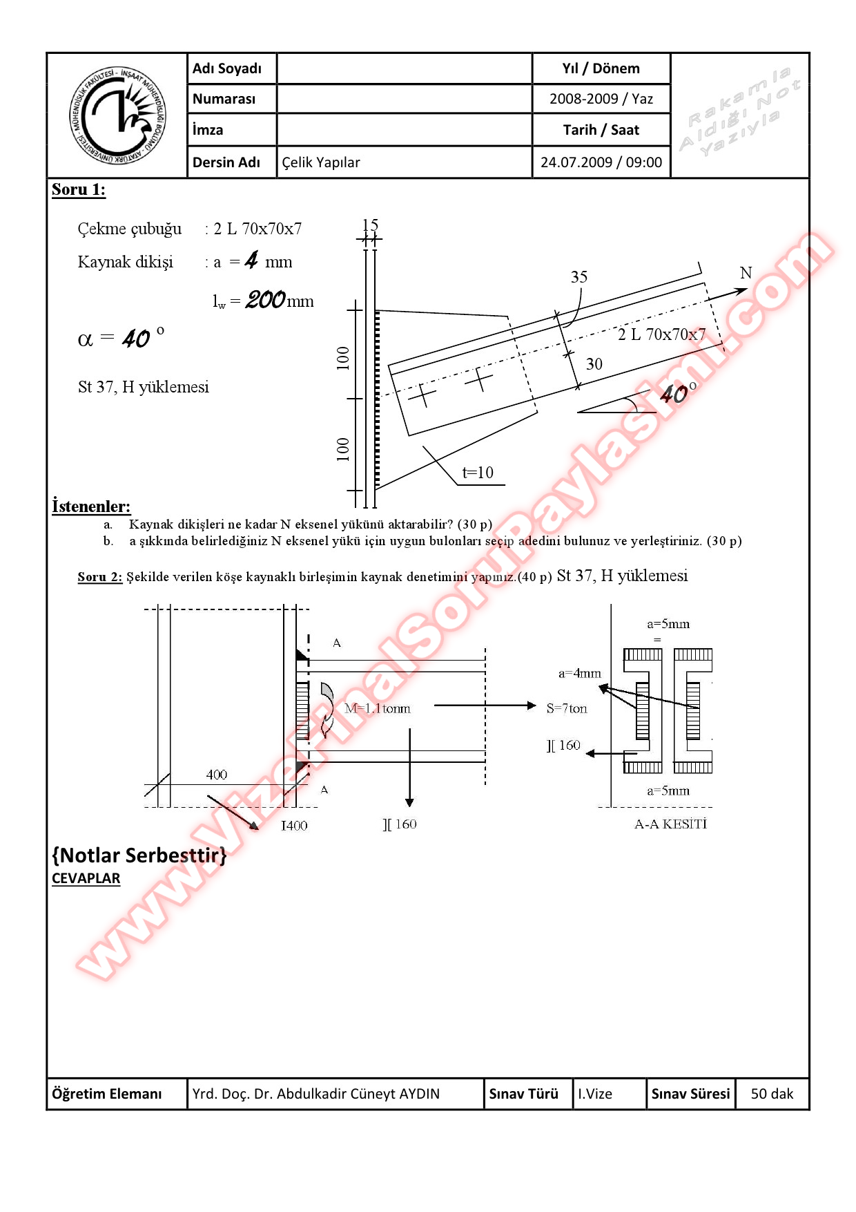Çelik Yapılar Yaz Okulu Vize3 Soruları - 2008 14-05-2015, 17:29