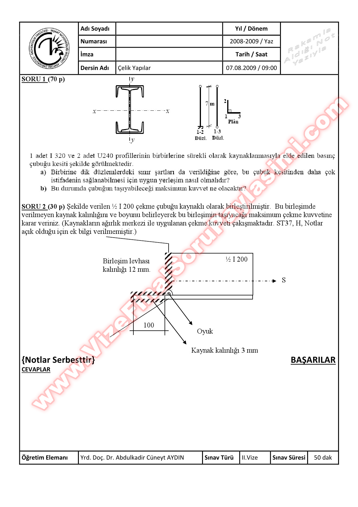 Çelik Yapılar Yaz Okulu Vize3 Soruları - 2008 14-05-2015, 17:29