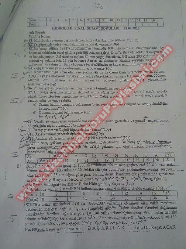 Hidroloji Final Soruları 1-04-2015, 15:52