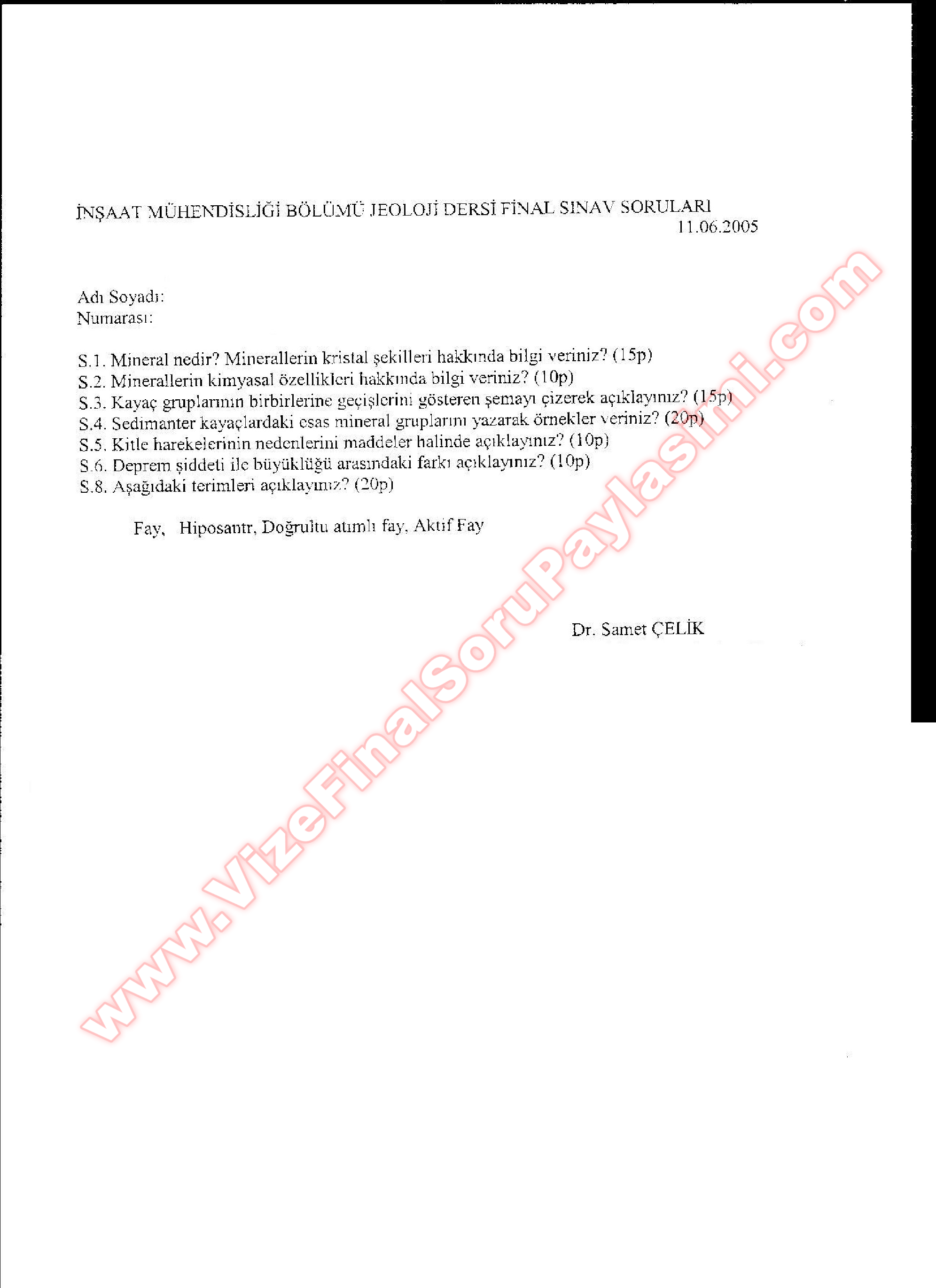 Jeoloji Vize Soruları -2005 14-05-2015, 18:42