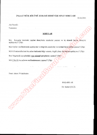 Vize ve Final Soruları / Erzurum Atatürk Üniversitesi / Jeoloji Dersi