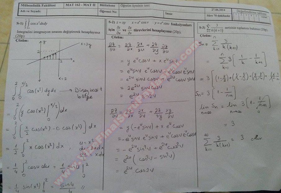 Matematik -2 Bütünleme Soruları ve Çözümleri - 2014 (Müh. Fak.) 27-06-2014, 20:37