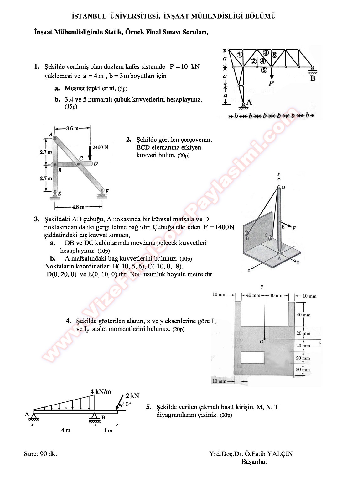 Statik Dersi Final Soruları ve Çözümleri 25-10-2014, 23:48