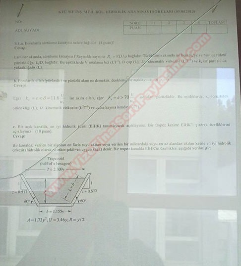 hidrolik dersi vize sorulari cozumleri cevaplari ktu karadeniz uni GERİ DÖN-