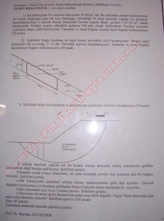 Vize ve Final Soruları / Karadeniz Teknik Üniversitesi / Zemin Mekaniği -2