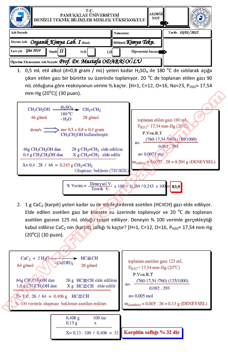 organik kimya laboratuvari lab lab-1 dersi final sorulari cevaplari cozumleri pau GERİ DÖN-