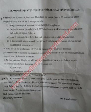 Genel Fizik 2 Final Sınav Soruları Gündüz 2011 26-03-2015, 05:45