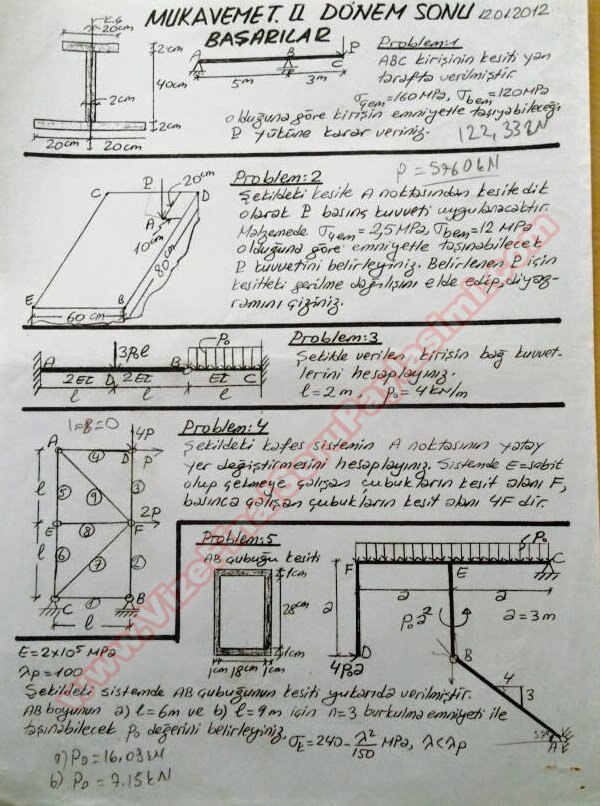 ktu mukavemet-2 mukavemet2 final sorulari 2012