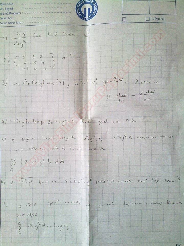 Matematik-2 Sınav Soruları - 2010 24-09-2014, 23:09