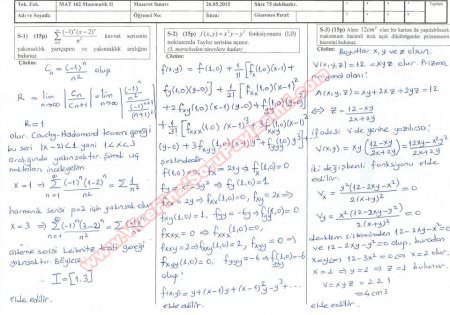 Matematik -2 Mazeret Soruları ve Cevapları 26-05-2015, 14:48