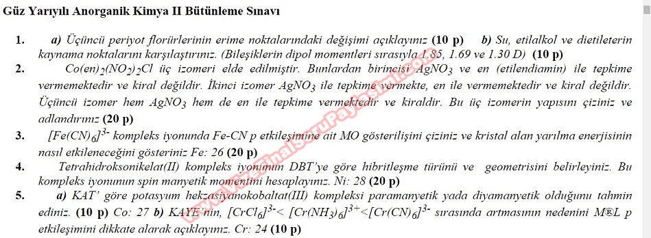 Anorganik Kimya -2 Vize Soruları 31-05-2015, 08:30