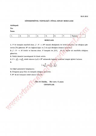Diferansiyel Topoloji-1 Final Soruları 27-04-2015, 17:51