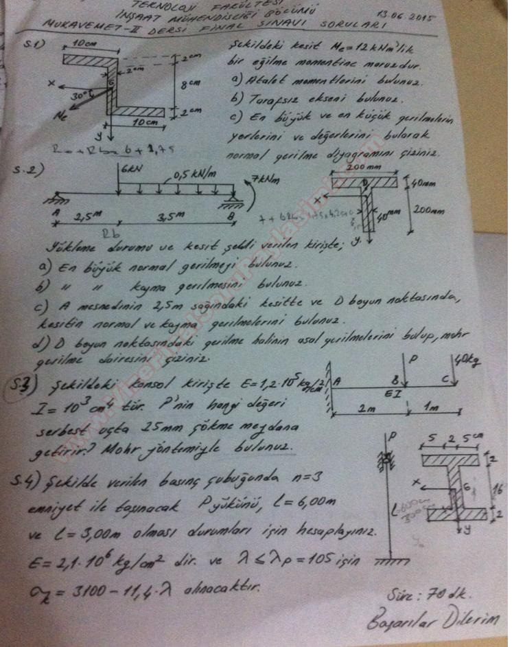 mukavemet-2 final sorulari cevaplari firat uni 2015 GERİ DÖN-