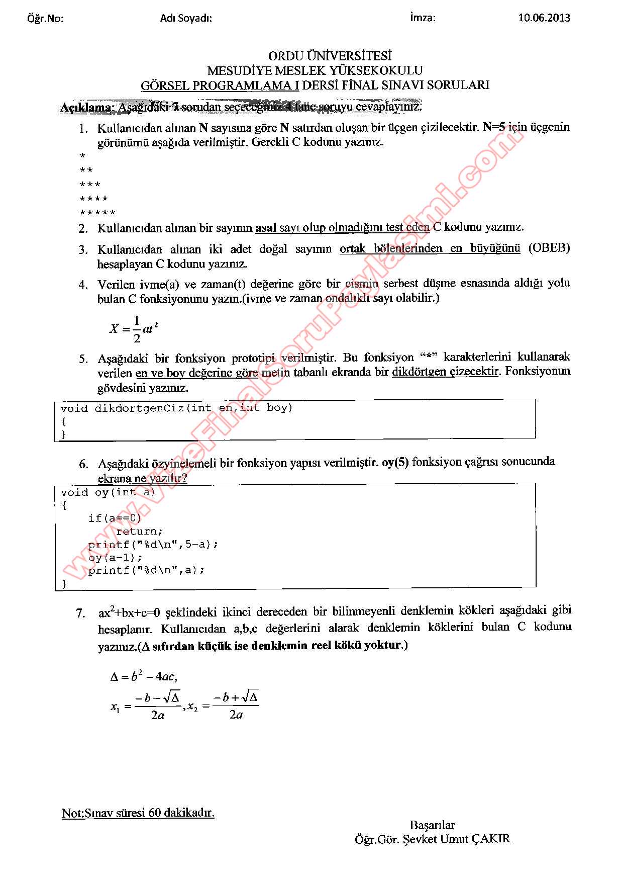 Vize ve Final Soruları / Ordu Üniversitesi / Görsel Programlama -1