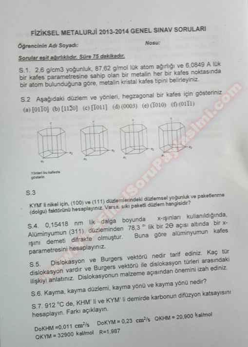 Fiziksel Metarulji Dersi Final Soruları 2013 - 2014