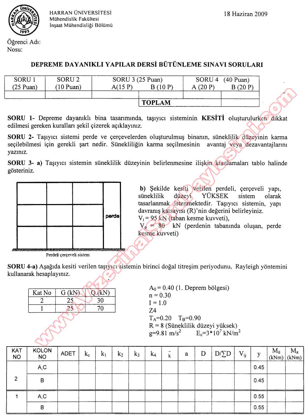 depreme dayanikli yapilar butunleme sorulari cevaplari cozumleri harran GERİ DÖN-