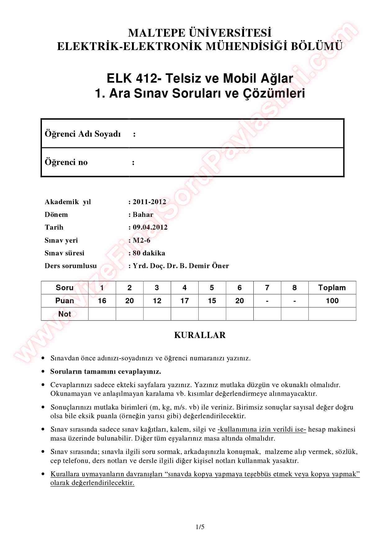 Vize ve Final Soruları / Maltepe Üniversitesi / Telsiz ve Mobil Ağlar Dersi