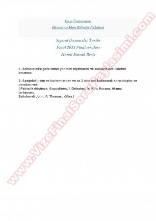 Siyasal Düşünceler Tarihi Final Soruları-2013 18-01-2015, 01:02