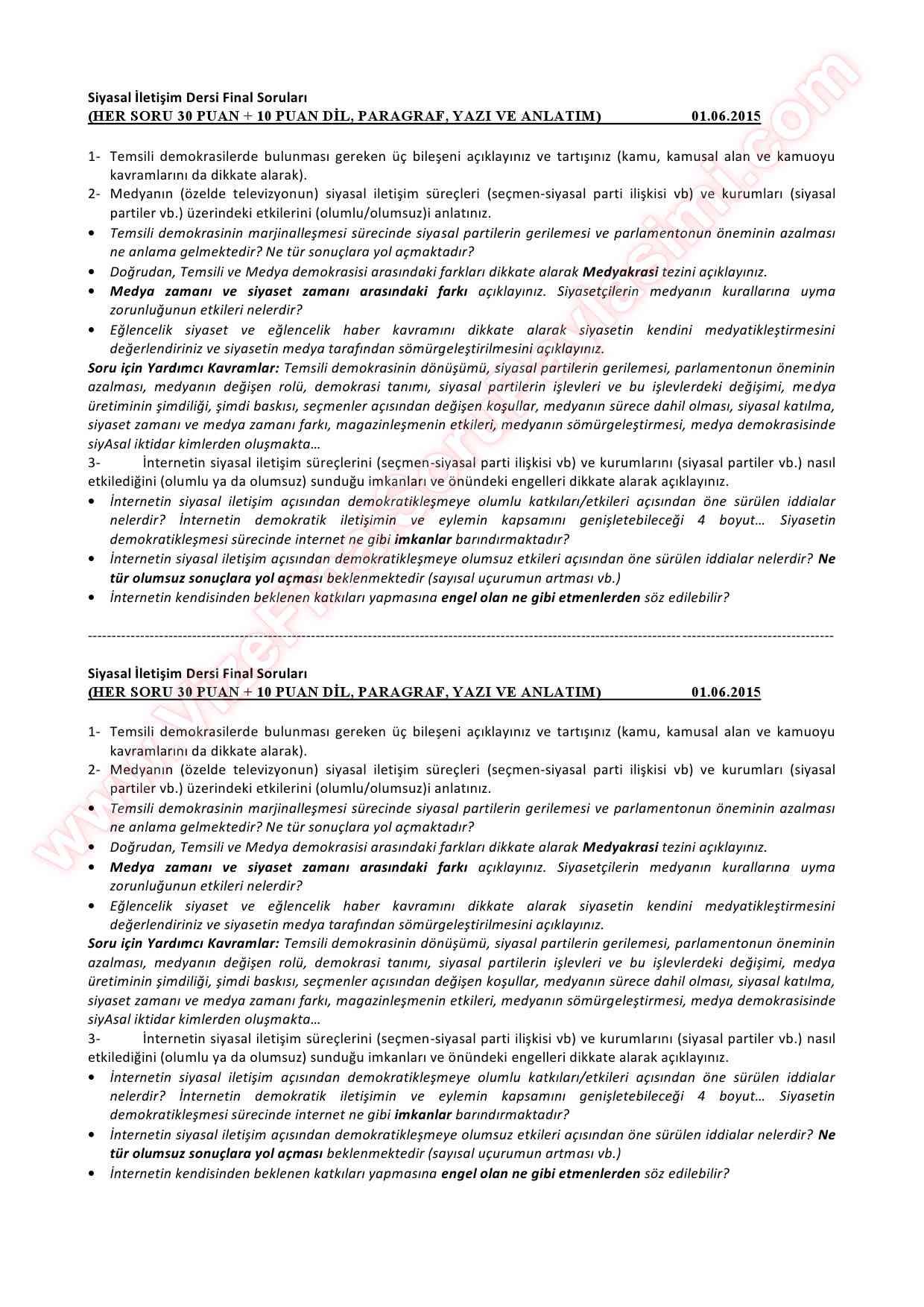 Siyasal İletişim Final Soruları - 2014 10-01-2015, 12:40