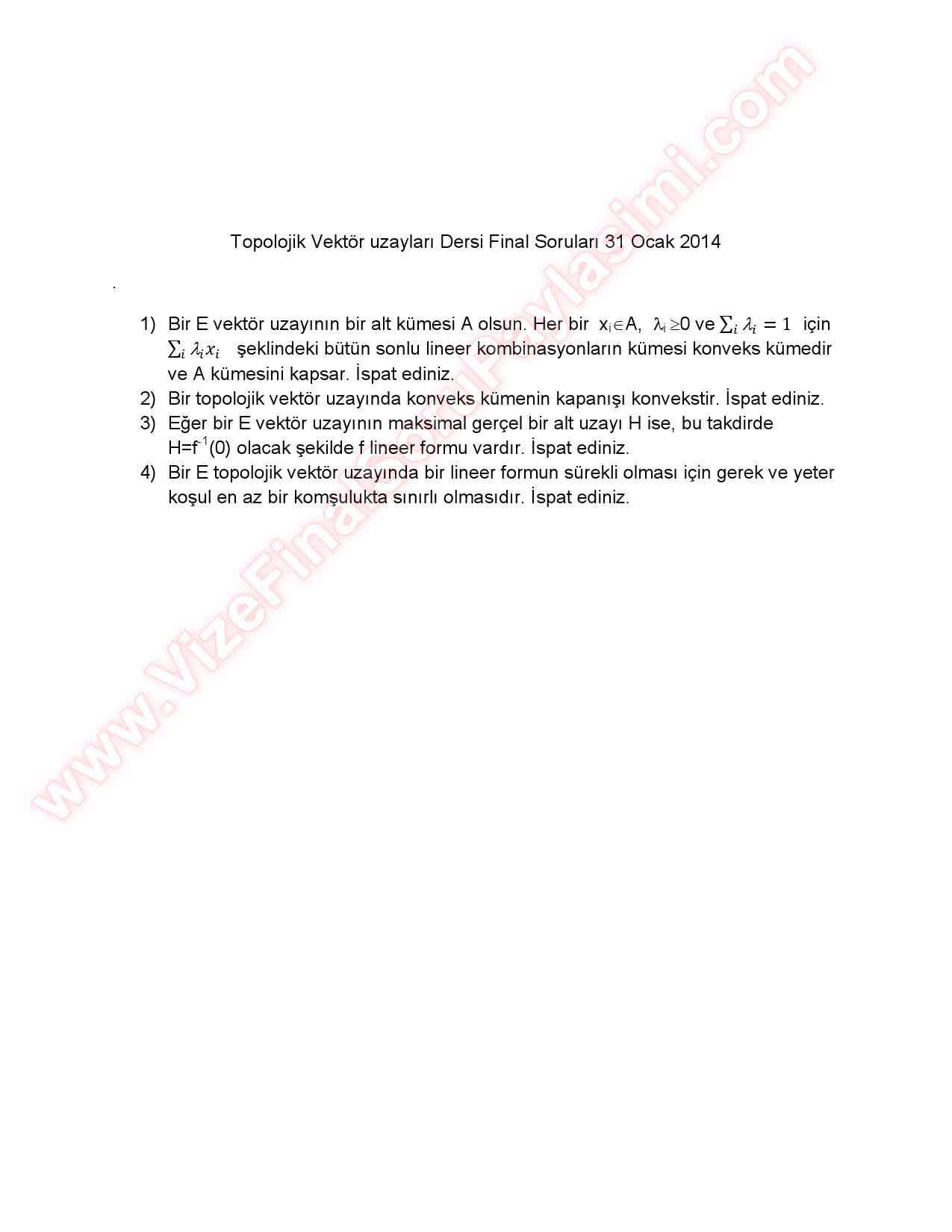 Vize ve Final Soruları / Maltepe Üniversitesi / Topolojik Vektör Uzayları Dersi