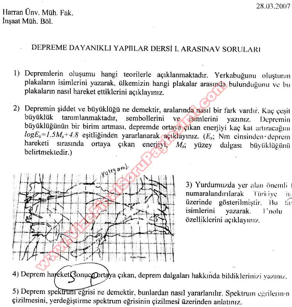 Depreme Dayanıklı Yapılar 2.Vize Soruları-2007 1-07-2015, 20:36