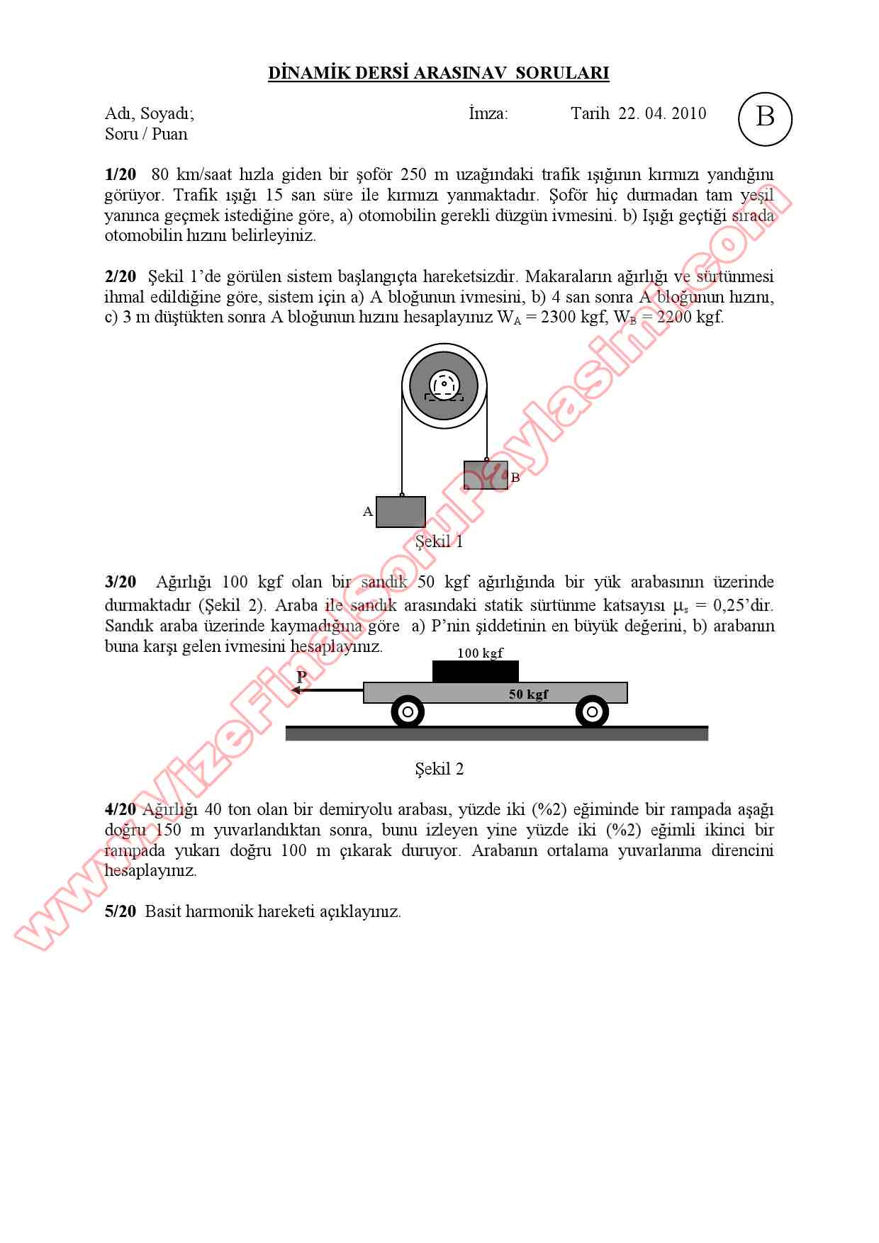 Dinamik Dersi Vize Soruları ve Cevapları -2010