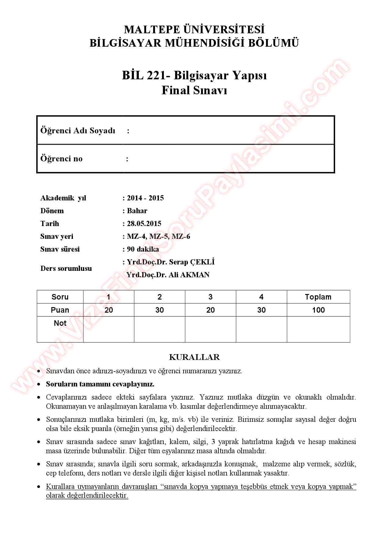 Vize ve Final Soruları / Maltepe Üniversitesi / Bilgisayar Yapısı Dersi